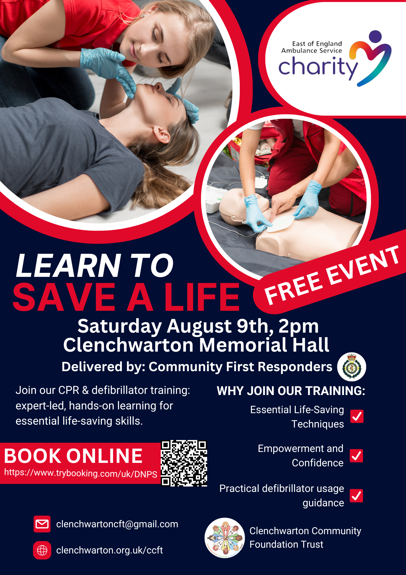 This FREE training session will be held on a Saturday in August 9th, 2 - 4pm at the Clenchwarton Memorial Hall and is open to residents of Clenchwarton and the surrounding areas.